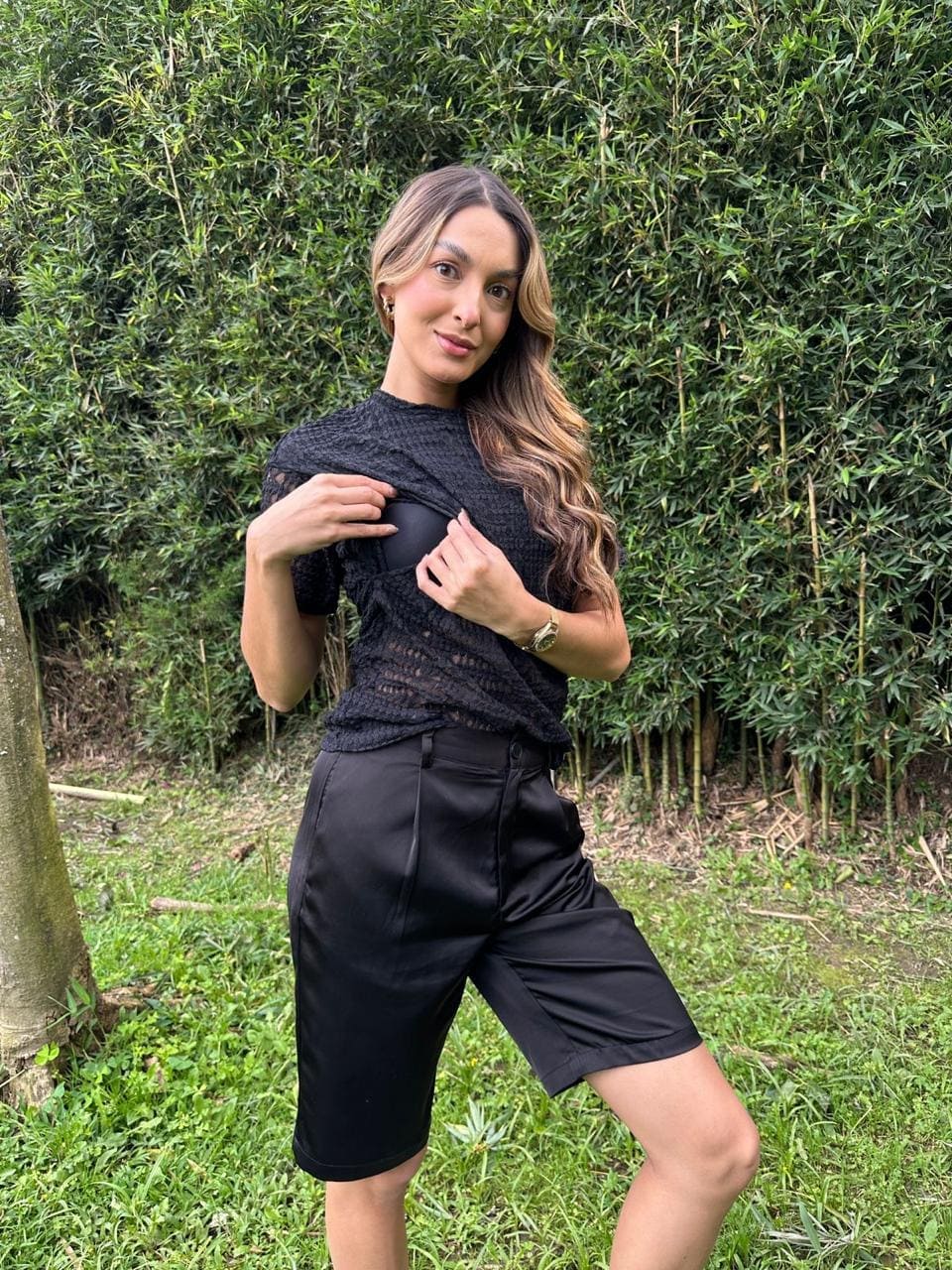 Camiseta cuello redondo manga corta, Funcionalidad para lactar, Tela en blonda.