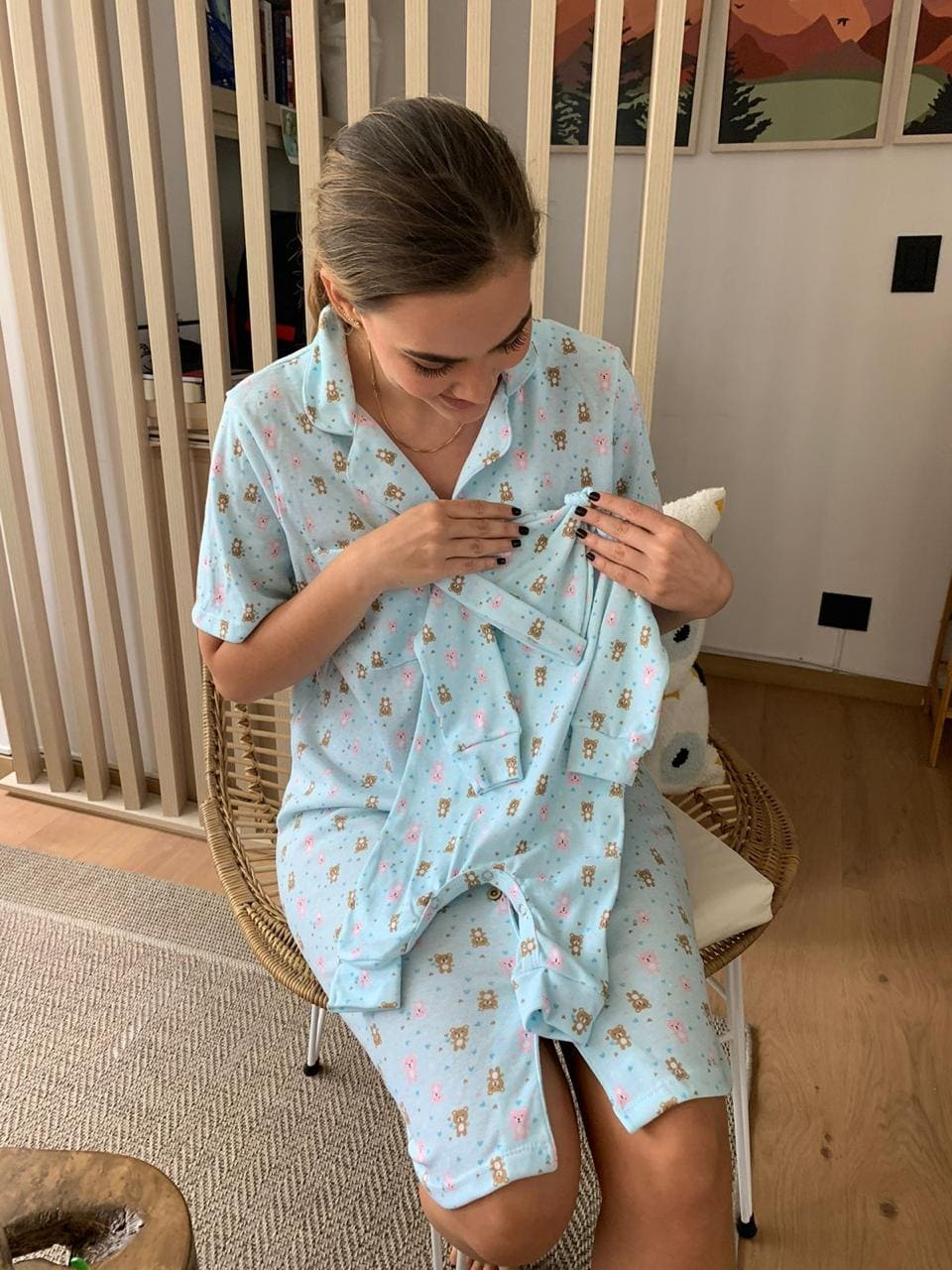 Dúo Batola botón con manga corta. Enterizo talla única 0/3 meses. Mismo estampado para los 2. Tela con algodón.