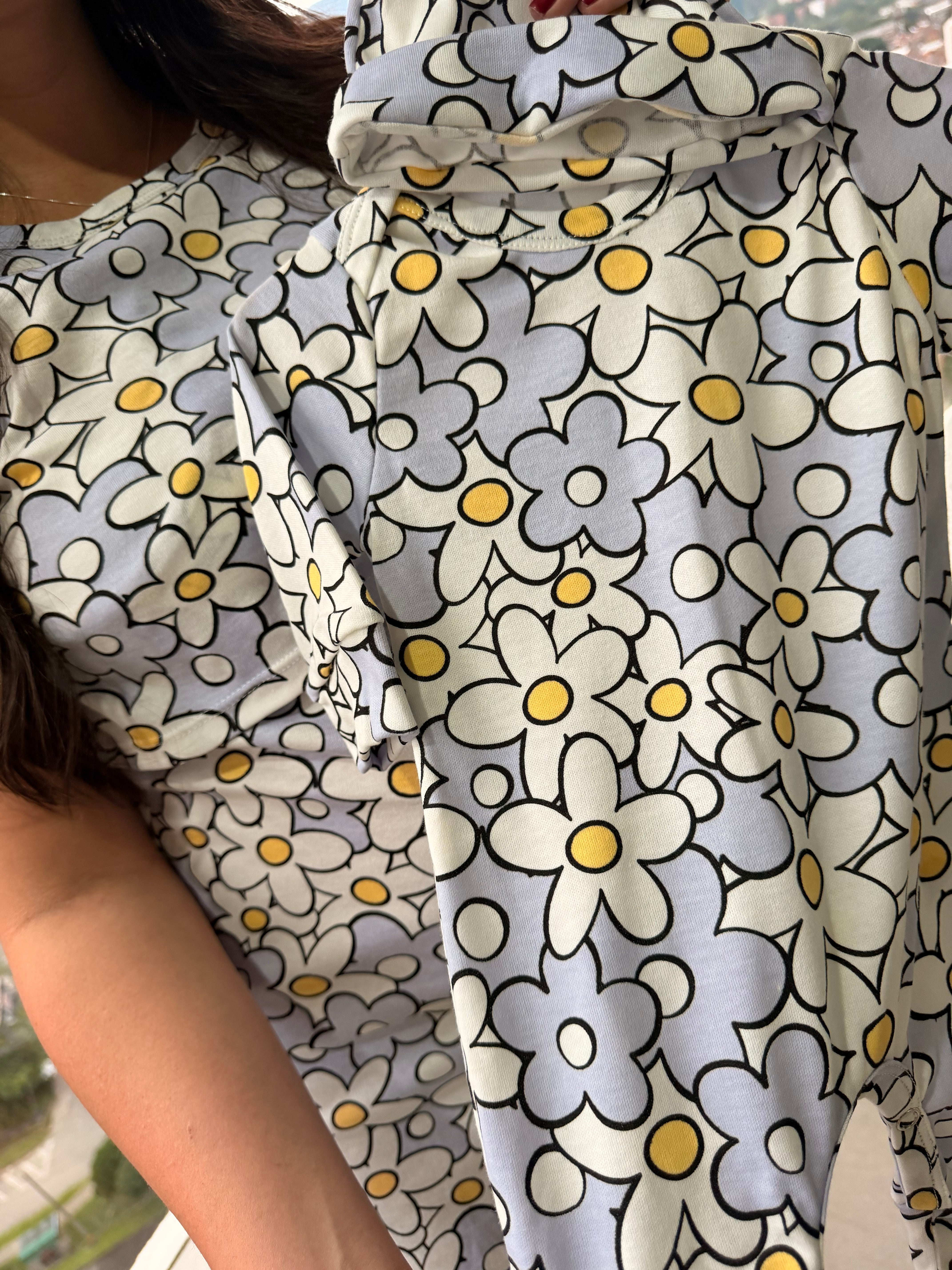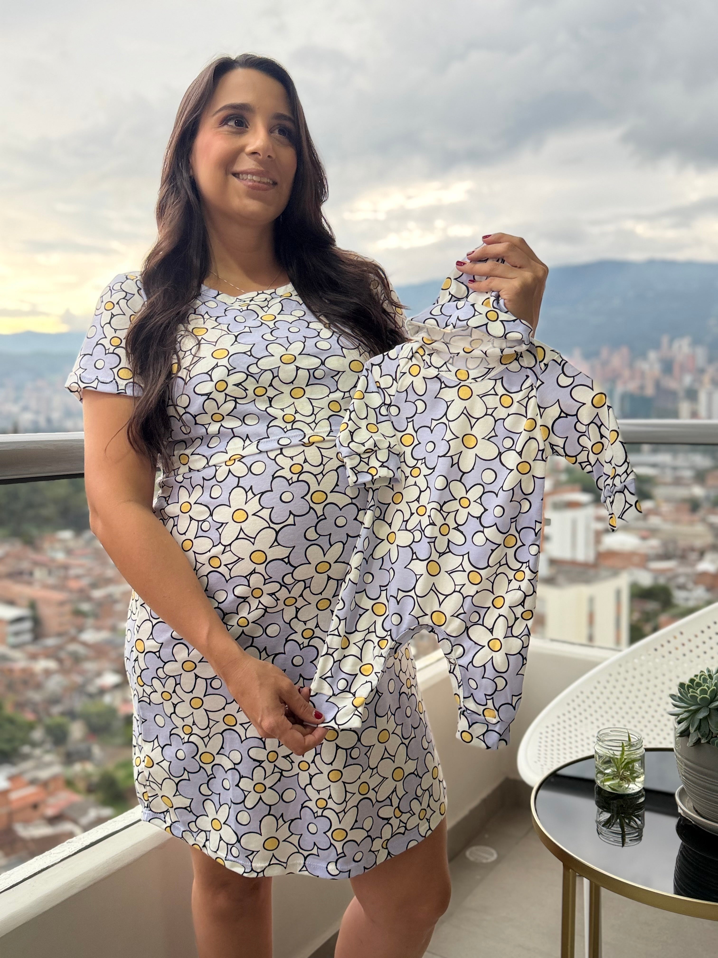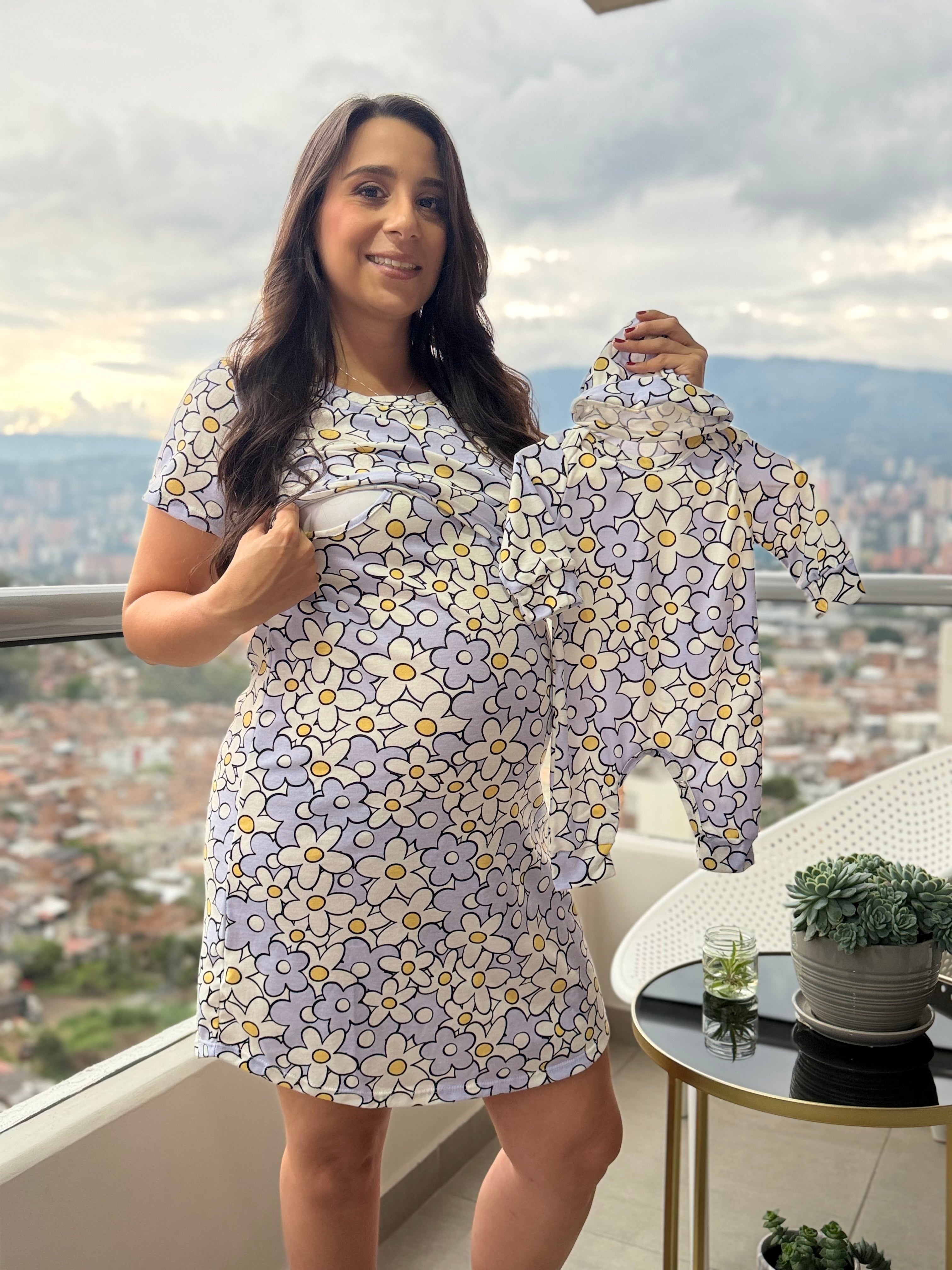 Dúo Batola Básica Manga Corta. Funcionalidad para lactar. Enterizo talla única 0/3 meses. Mismo estampado para los 2. Tela con algodón.