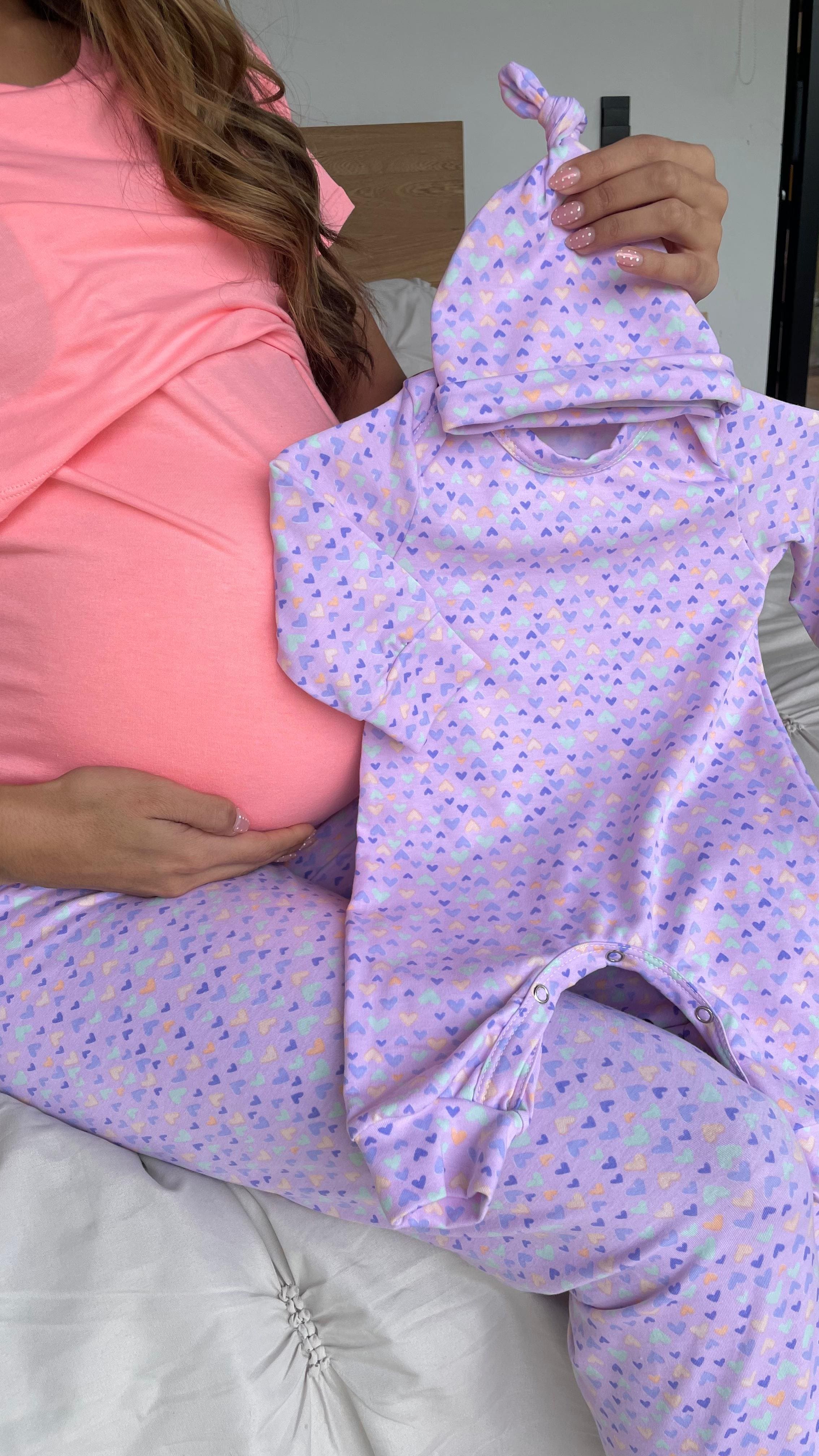 Dúo camiseta con funcionalidad para lactar. manga corta y Jogger con elástico en cintura. Enterizo talla única 0/3 meses. Tela con algodón.