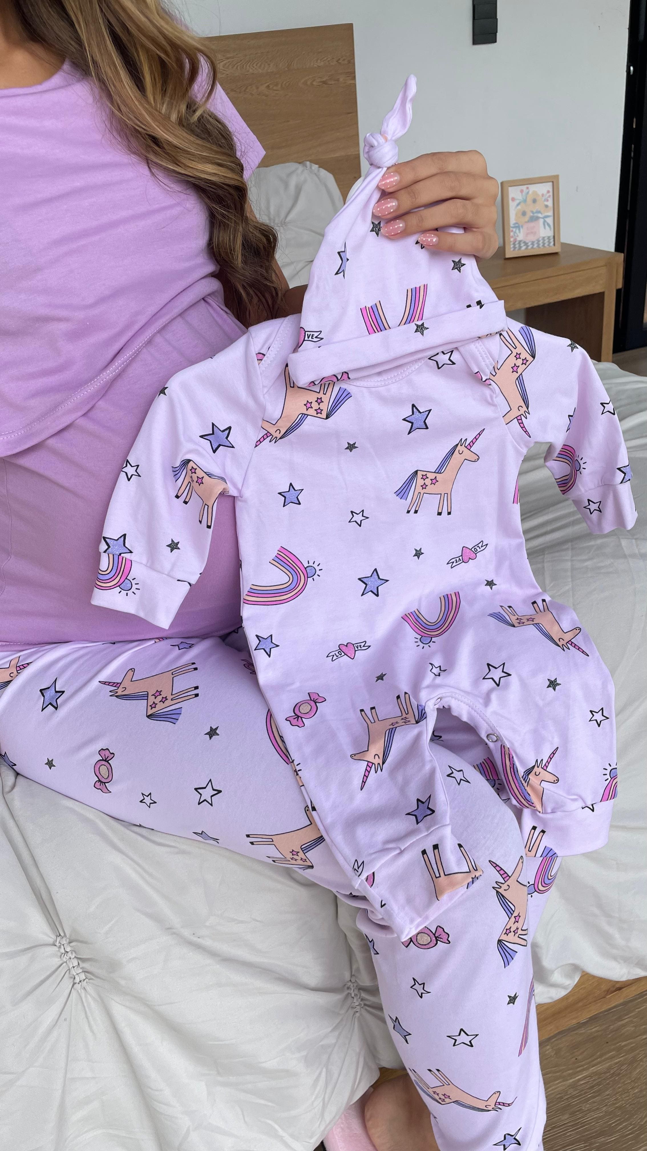 Dúo camiseta con funcionalidad para lactar. manga corta y Jogger con elástico en cintura. Enterizo talla única 0/3 meses. Tela con algodón.