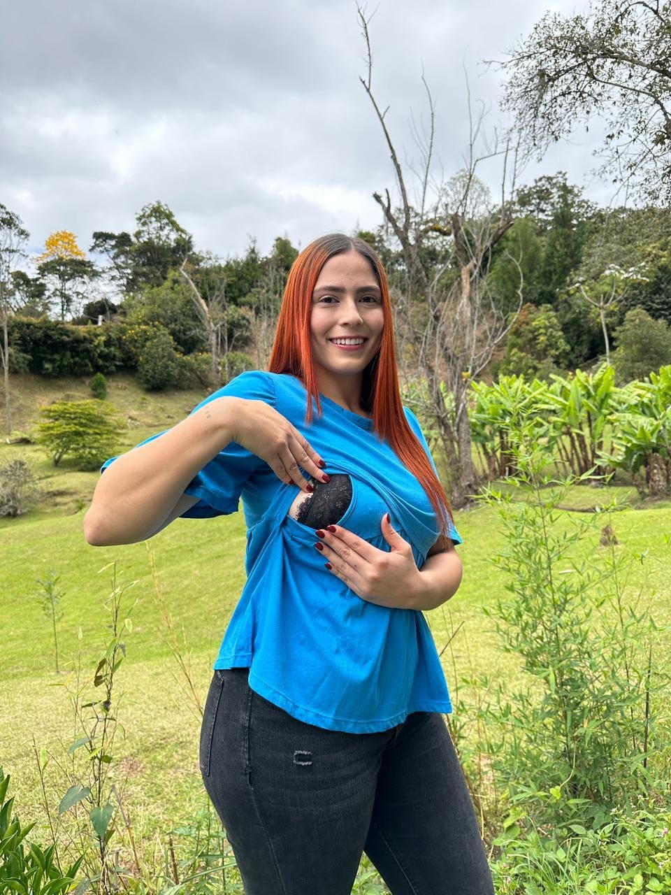 Blusa manga corta, silueta amplia con funcionalidad para lactar, Unicolor. Tela en algodón.